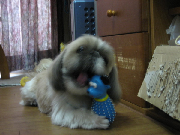 歯の大きさや顎の強さが違うのでこんな柔らかオモチャはイチコロです(爆