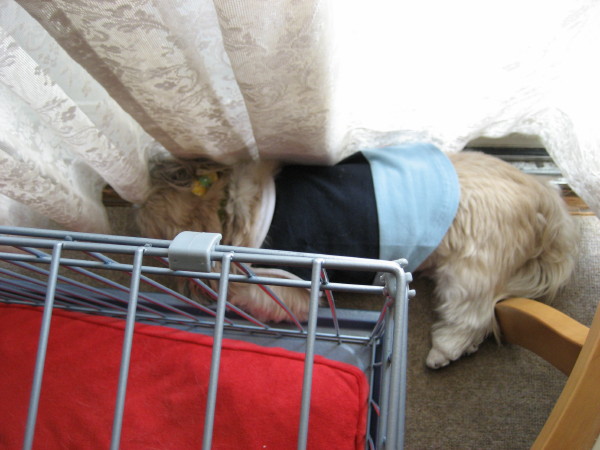 とりあえずオシッコだけ済ませると走って玄関へ戻るちゃっぴー君。
